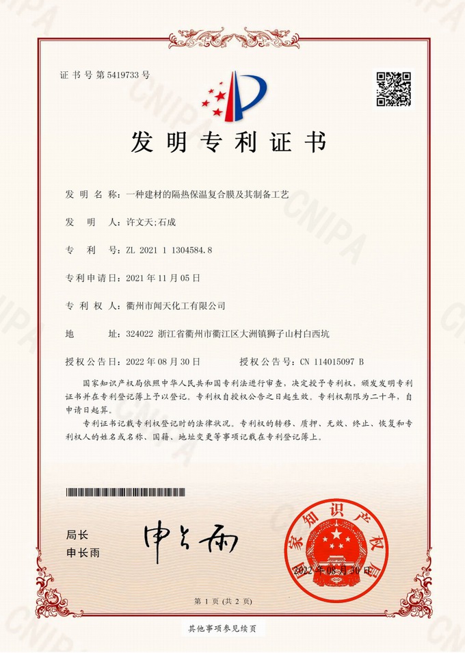 衢州市聞天化工有限公司成立于2003年,是國內(nèi)研發(fā)、生產(chǎn)氟碳涂料的企業(yè)。衢州傳褀防水防腐工程科技有限公司作為其下屬公司,專業(yè)承接各類防水防腐項(xiàng)目。企業(yè)經(jīng)過20年的市場(chǎng)磨練,已在鋼構(gòu)防腐領(lǐng)域、建筑屋面和屋面修繕、防水隔熱領(lǐng)域、建筑外立面的防水隔熱裝飾領(lǐng)域及戶外竹木防腐領(lǐng)域形成了自己獨(dú)特的產(chǎn)品體系和個(gè)性化解決方案。公司經(jīng)過多年的努力,已獲得了多項(xiàng)國家發(fā)明專利和新產(chǎn)品科技成果,并參與了中國建筑材料流通協(xié)會(huì)組織的《房屋修繕防水工程規(guī)范》的編制,中建協(xié)涂裝委員會(huì)浙西工作站設(shè)立在我公司。公司的產(chǎn)品有一個(gè)共同的特點(diǎn),就是經(jīng)久耐用,使用年限超長。鋼構(gòu)防腐的效果是其他材料的三到五倍使用壽命;屋面防水隔熱的效果是其他材料的三到五倍的使用壽命;建筑外立面的效果是既防水又隔熱保溫,既美觀又不褪色;戶外竹木防腐的效果更是其他材料五倍以上的壽命。